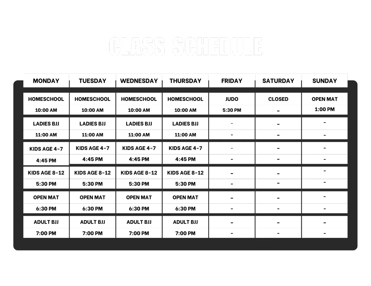 Clean gi or rashguard/shorts (no zips), water, sandals for off-mat. Come 10 minutes early—we’ll pair you with a friendly partner.